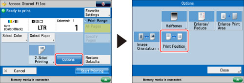 If no print position is specified, the image is printed in the center.