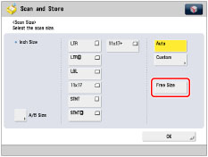 You can manually specify a scan size when scanning originals that cannot be detected using [Auto]. You can also register the specified scan size.