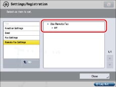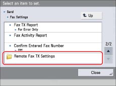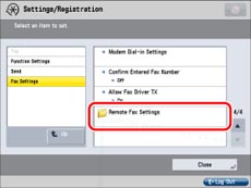 (Settings/Registration) → [Function Settings] → [Send] →[Fax Settings] → [Remote Fax Settings].