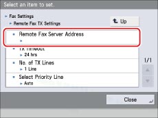 Press [Remote Fax Server Address].