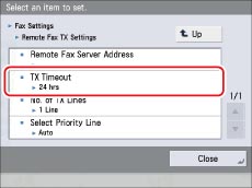 (Settings/Registration) → [Function Settings] → [Send] →[Fax Settings] → [Remote Fax TX Settings].