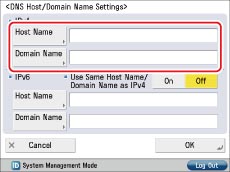 Check whether the host name and domain name are set in [DNS Host/Domain Name Settings] for <IPv4> on the DNS Settings screen.
