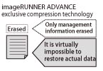 By using the data erase function, actual data (image, management, and spool data for the copying, printing, and sending/receiving functions) is erased at the same time as management information.