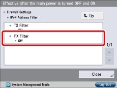 Press [IPv4 Address Filter] → [RX Filter].