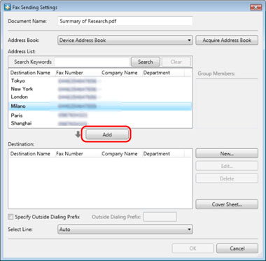 You can configure the cover sheet in the [Fax Sending Settings] dialog box. For more information, see "Reference".