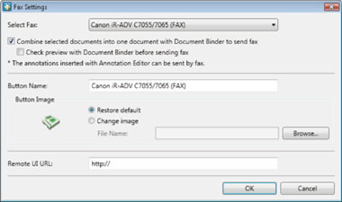 You can fax multiple documents as a single binder document. In this case, the [Multiple Document Order Settings] dialog box is displayed. For more information, see "Reference".
