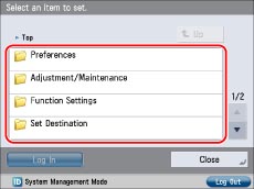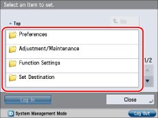 When you finish specifying the settings, press [Log Out] at the bottom right of the screen to log out.