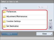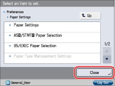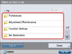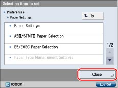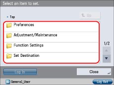 When you finish specifying the settings, press [Log Out] at the bottom right of the screen to log out.