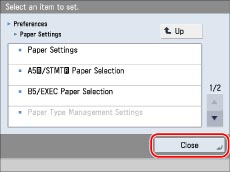 Specify the setting → press [Close].