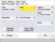 If you select [Plain], select the paper weight from [Plain Paper Weight Set.].