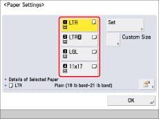 Paper sizes and types can also be registered from the Consumable screen.(See "Checking the Status of Consumables and Other Information.")