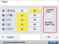 If [Consider Paper Type] and [Consider Color] are set to 'Off'