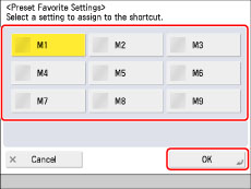 Press [Preset Fav. Settings] → select assigned Favorite Settings → press [OK].