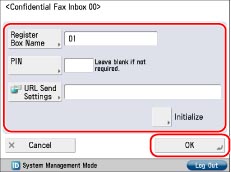 You can set and register a name and PIN for any Confidential Fax Inbox. You can also initialize the registered name and PIN.