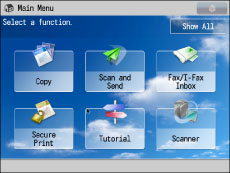 If you press [Show All] on the Main Menu screen, all buttons are displayed in the default order, even if you have altered the layout of the buttons. To return to the customized screen, press [Show All] again.