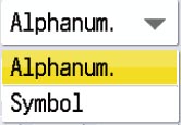 Pressing a key that has a down triangle () to the right of its name, displays a drop-down list containing other setting options.