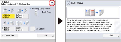 Any time appears on the touch panel display, you can check a detailed explanation of the function and its settings.