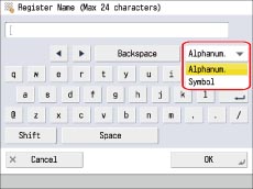 » Basic Operations » Screens Displayed on the Touch Panel Display » Entering Characters from the Touch Panel Display