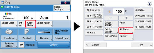 If you set the copy (zoom) ratio in [XY Ratio], the image of the original may be rotated before being printed. The machine calculates whether or not to do this based on the original size and the specified copy (zoom) ratio.