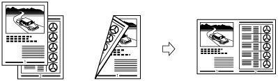 This setting reduces two 1-sided originals or one 2-sided original to fit on one side of a sheet of paper.