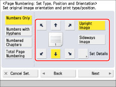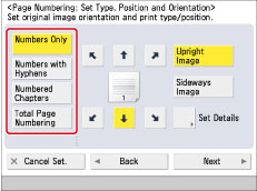 If you use [Page Numbering] with [Add Cover] or [Insert Sheets], numbers will not be printed on the inserted pages.