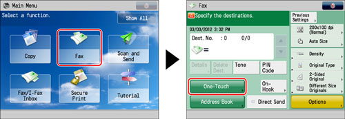 To use this feature, you must first register destinations in one-touch buttons. (See "Storing/Editing/Deleting One-Touch Buttons.")