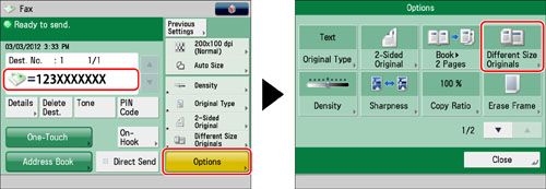 If you send different sized originals, the paper size used to output the faxes on the recipient's machine is the size of the largest document you sent. For example, if you send an LTR and 11" x 17" original, they will both be output on 11" x 17" paper at the recipient's machine.