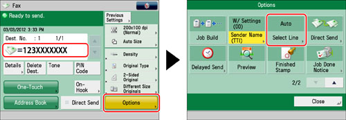 [Auto]: Selects the line according to the settings specified for <Priority TX> in [Select TX Line]. (See "Setting the Line to Use When Sending.")