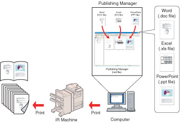 With Publishing Manager, you can create documents efficiently utilizing the features of a Canon machine to the fullest.