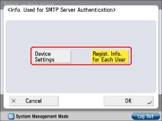 Uses the information for SMTP server authentication set in the machine. (See "Common Communication Settings for E-Mail/I-Fax.") Further settings are not required for every user.