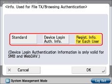 Press [Auth. Information for File TX/Browsing].