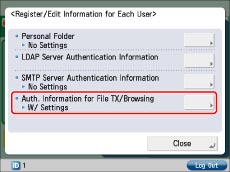 Press [Info. Used for File TX/Browsing Auth.].