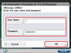 Enter the user name and password used for Server authentication → press [OK].