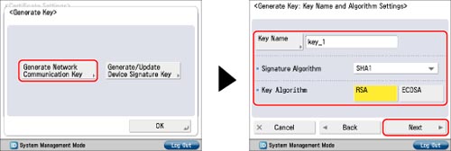 You cannot specify 'Device Signature Key' (used for key pairs for adding digital signatures to PDF or XPS files) or 'AMS' (used for key pairs for access restrictions) as the name for the key pair.
