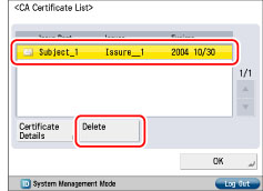 You can confirm the settings of registered CA certificates. You can also delete unnecessary CA certificates.