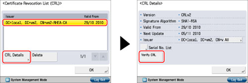 Select the certificate revocation list for the certificate you want to verify → press [CRL Details] → [Verify CRL].