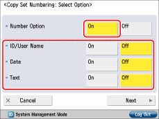If you do not want to specify copy set numbering option settings, press [Off].