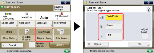 Press [Original Type] → select the original type.