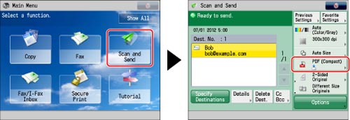 If PDF (Trace & Smooth), PDF (Compact), or XPS (Compact) is registered as the standard file format and you are sending documents by I-fax, a message prompting you to change the file format may appear. In this case, change the file format to anything other than PDF (Trace & Smooth), PDF (Compact), or XPS (Compact). For more information on registering/changing the standard mode, see [Change Default Settings]. (See "Changing the Default Settings for Send.")