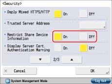 Even when this restriction is enabled, the device information is displayed when communicating with addresses set as trusted servers.