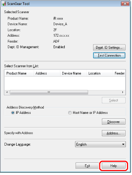 Viewing the Color Network ScanGear/Network ScanGear Help