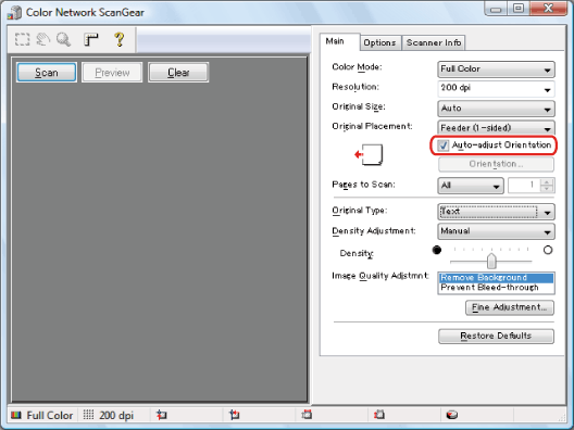 When scanning from the feeder, you can set Network ScanGear to display the document in its correct orientation on the computer monitor.