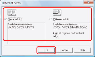 For combinations of sizes such as A3 and B4 with no sides of the same length in common, select [Different Width].