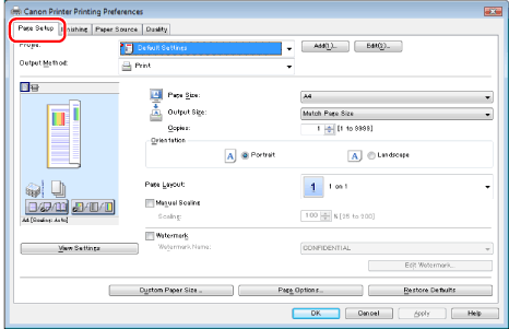 For instructions on how to display the printer driver screen, see "Printing" or "Configuring the Default Print Settings."
