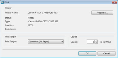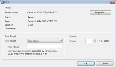 Select [Document (All Pages)] or [Print Pages] in [Print Target].