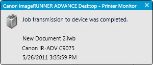 This is displayed when an error occurs in imageRUNNER ADVANCE or the status of imageRUNNER ADVANCE cannot be confirmed due to a network connection failure or power failure during the period from the beginning of spooling executed by the Windows spooler to the completion of printing with imageRUNNER ADVANCE.