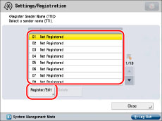 You can register any name as the Sender Name, such as the section or department's name, or an individual's name, and edit/delete registered names.