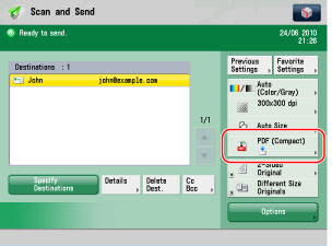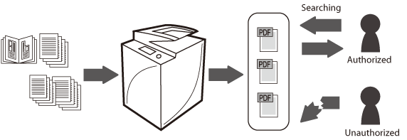 By using the Searchable PDF mode, you can convert paper documents into PDF which is text searchable. For example, you can save space by digitizing paper documents such as curriculum vitae. Encrypting PDF files enables you to restrict unauthorized users to open files and search information. If you set a password when you send scanned documents, you can prevent information leakage that occurs when the documents are sent to the wrong destination.