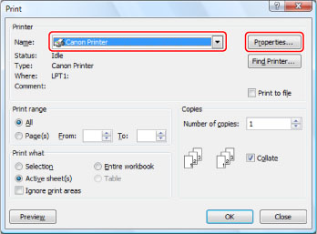 Select [Print] from the [File] menu of the application software you are using for the document to print → display the [Print] dialog box → click [Preferences].