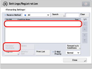 Select the registered forwarding condition → press [Validate/Invalidate].